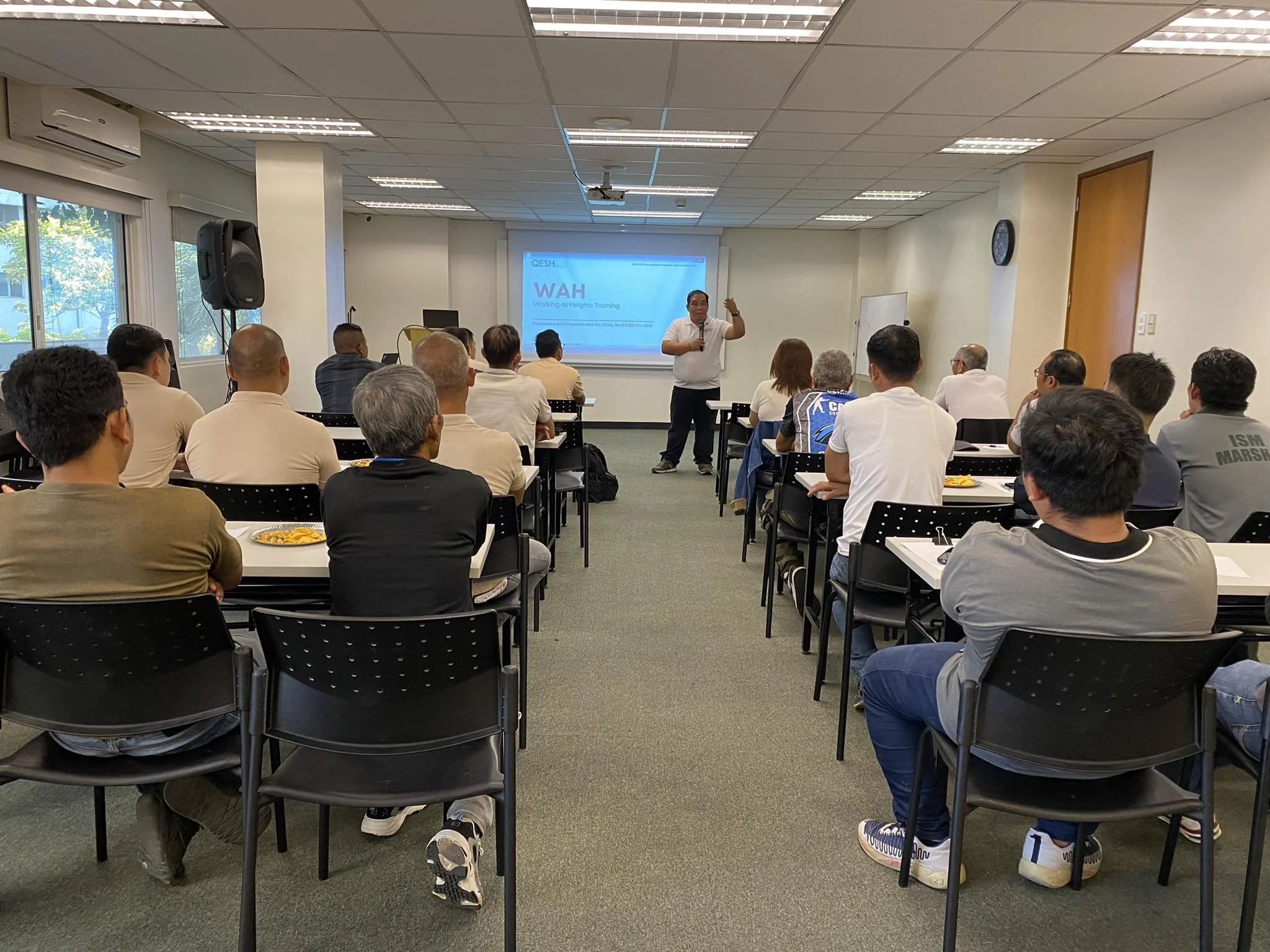 The session was facilitated by Reginald Basco, a DOLE Occupational Safety and Health Consultant, ISO 45001 Lead Auditor, and Registered Civil Engineer with over 19 years of experience in occupational safety and health. His extensive industry background provided valuable insights into managing risks associated with working at heights and strengthening preventive safety practices.