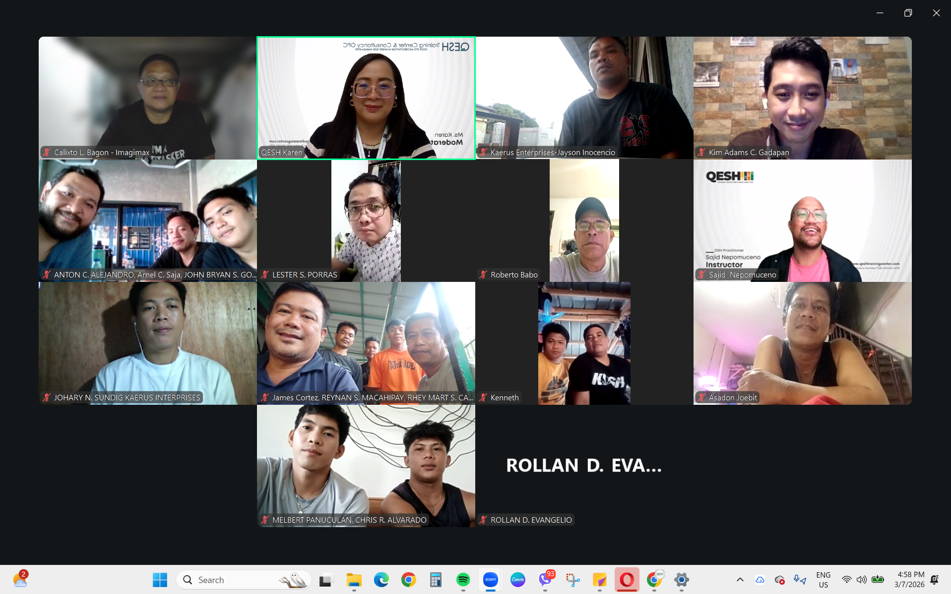 Imagimax Interior Architecture once again partnered with QESH Training Center & Consultancy OPC for another Mandatory (8) – Eight Hours Occupational Safety & Health Orientation Webinar, conducted on March 7.