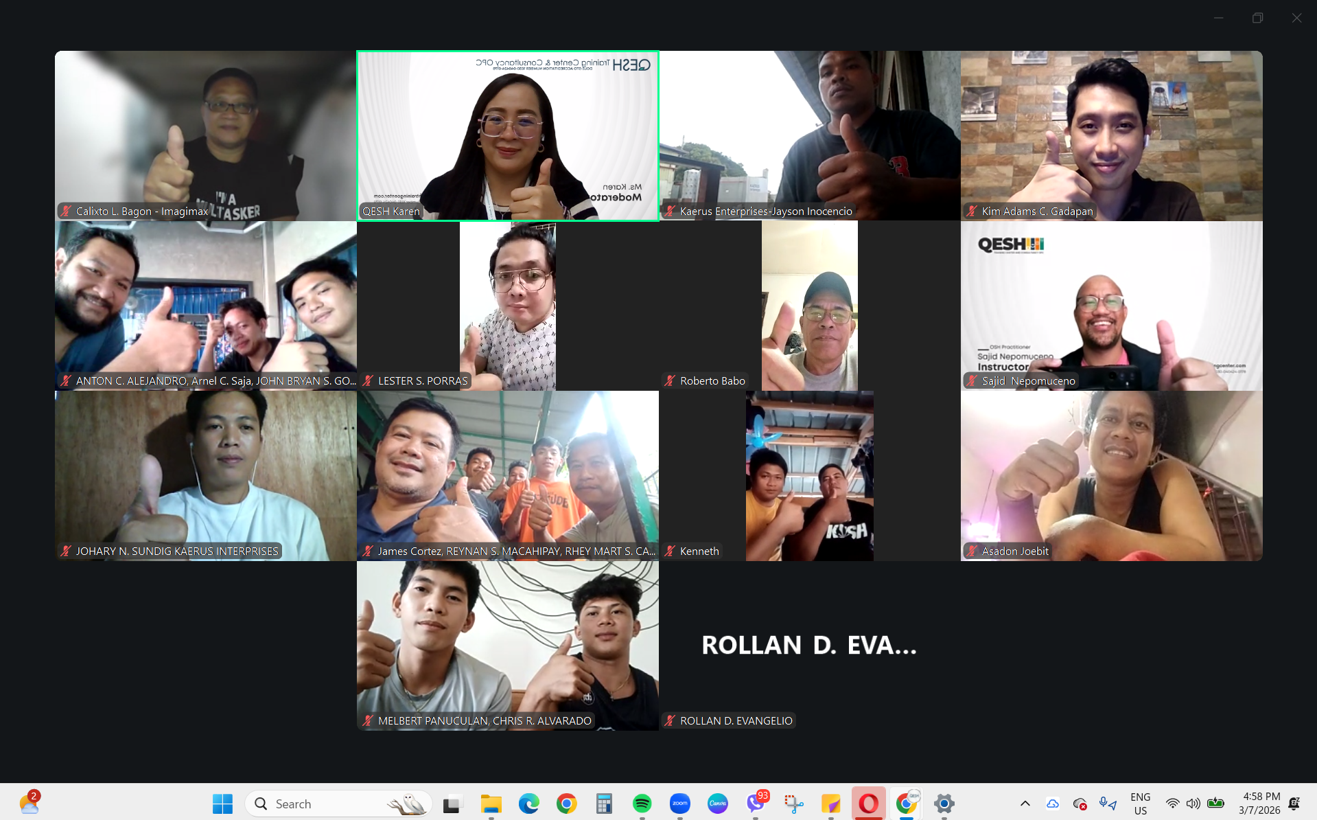 Through this engagement, QESH continues to support organizations in fulfilling DOLE-mandated safety requirements through flexible and accessible training delivery.