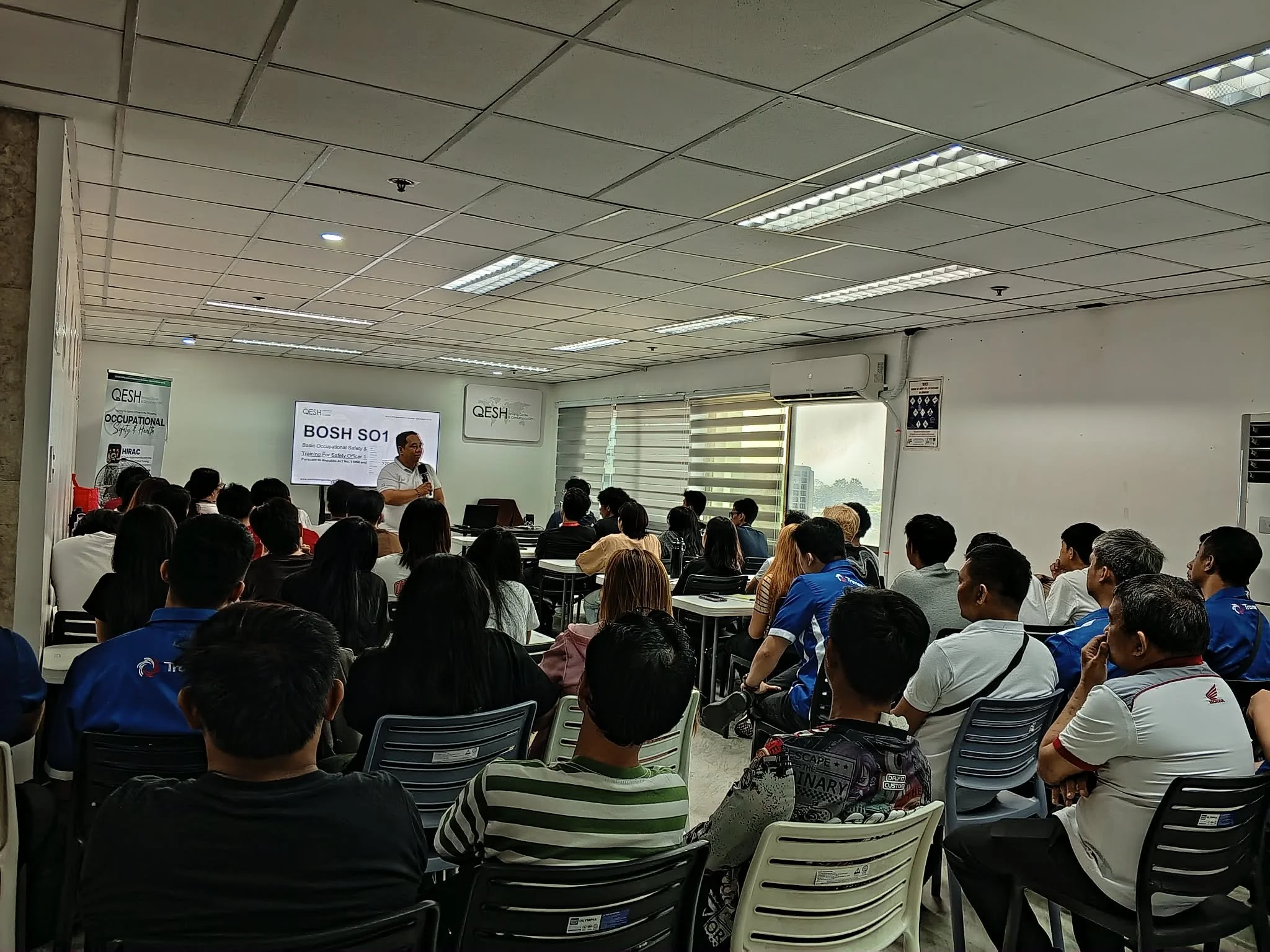 QUEZON CITY — QESH Training Center & Consultancy OPC conducted a Basic Occupational Safety and Health (BOSH SO1) Face-to-Face training for Quezon City University students on April 11, 2026, held at the QESH Training Center in Quezon City, with a total of 35 student participants.