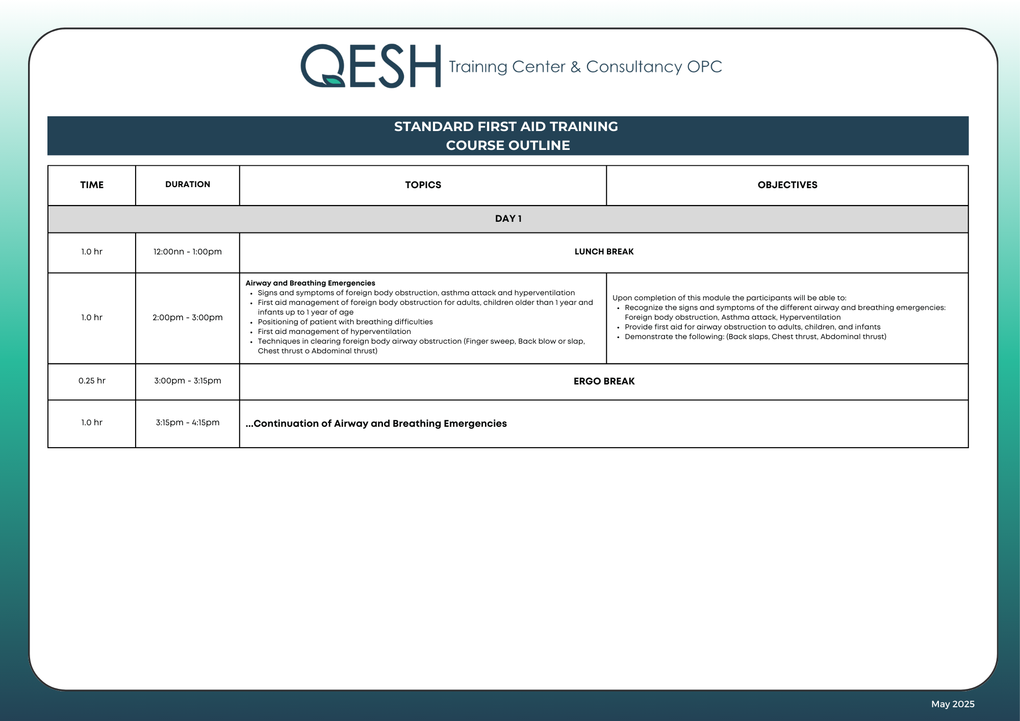 STANDARD FIRST AID MANUAL Standard First Aid Outline Join the Team · Join the Team · Join the Team · Join the Team · Join the Team · Join the Team · Contact