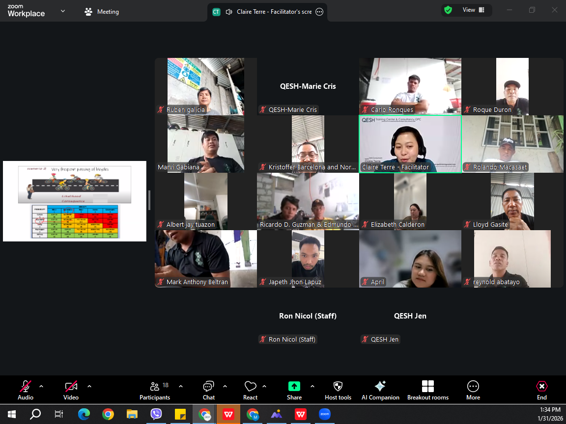 QESH Training Center & Consultancy OPC conducted an online Management of Exposure to Hazards (MESH) training for Slurry Asphalt Trading Corp. on January 31, reinforcing occupational health awareness and exposure risk management in operational and field-based work environments.